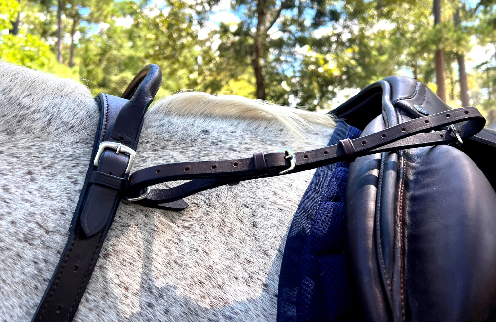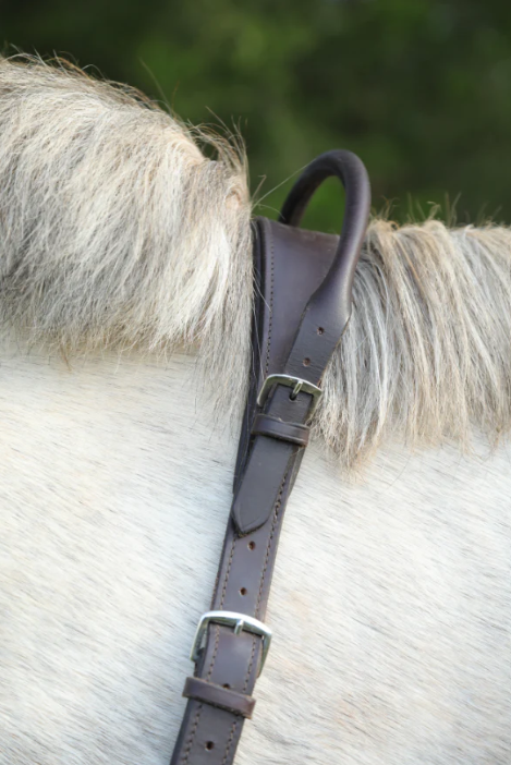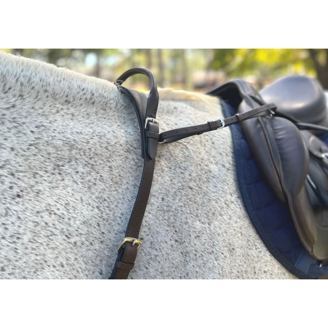 The neck strap reinvented with an extra rolled leather sitting above the neck strap for an easy hold that extends up 16″. Fully adjustable. Comes with 2 straps to for easy attachment to the saddle D Rings to conform to FEI rules.