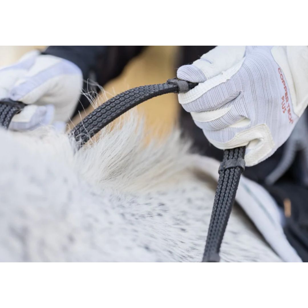 Just reins for any glove! Soft and supple rubber webbed rein with superior grip for a great connection in all weather conditions.