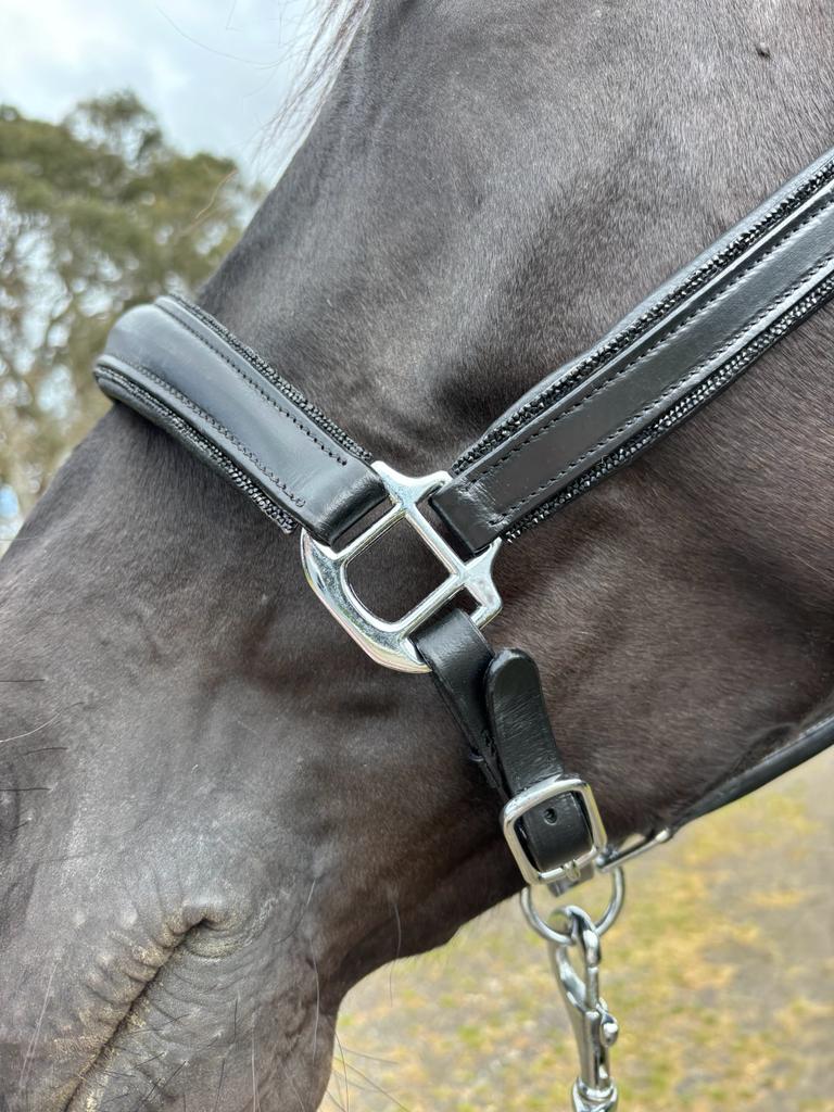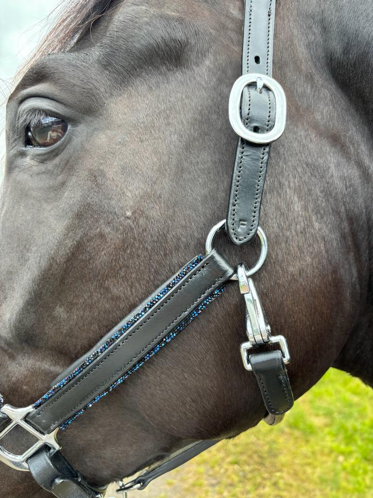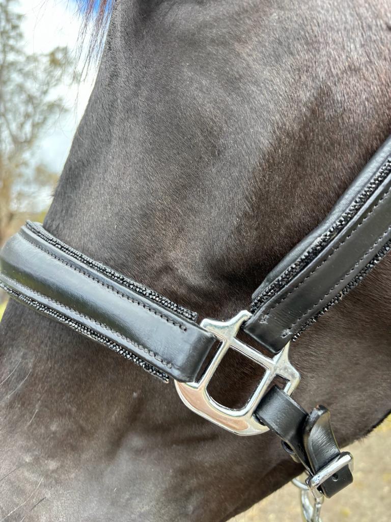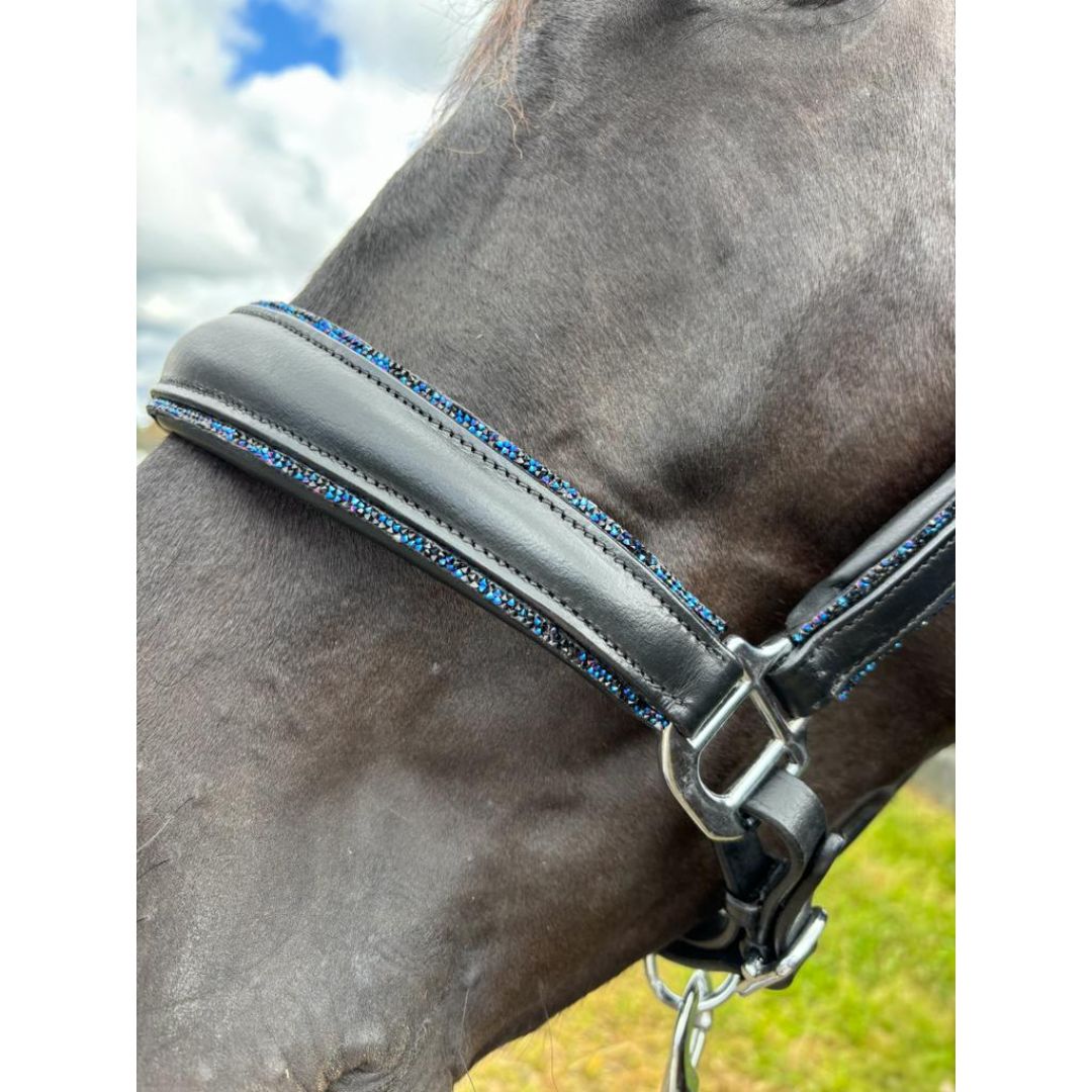The UNIQ Bridles Crystal Rock is a natural leather halter with crystal rock and silver colour details. With our Crystal Rock halter, your horse will look stunning when you go on tournaments, training courses or at home, it lets your horse shine. Not only appearance but also function is unbeatable. The anatomical headpiece prevents uncomfortable pressure on your horse’s sensitive nerves.