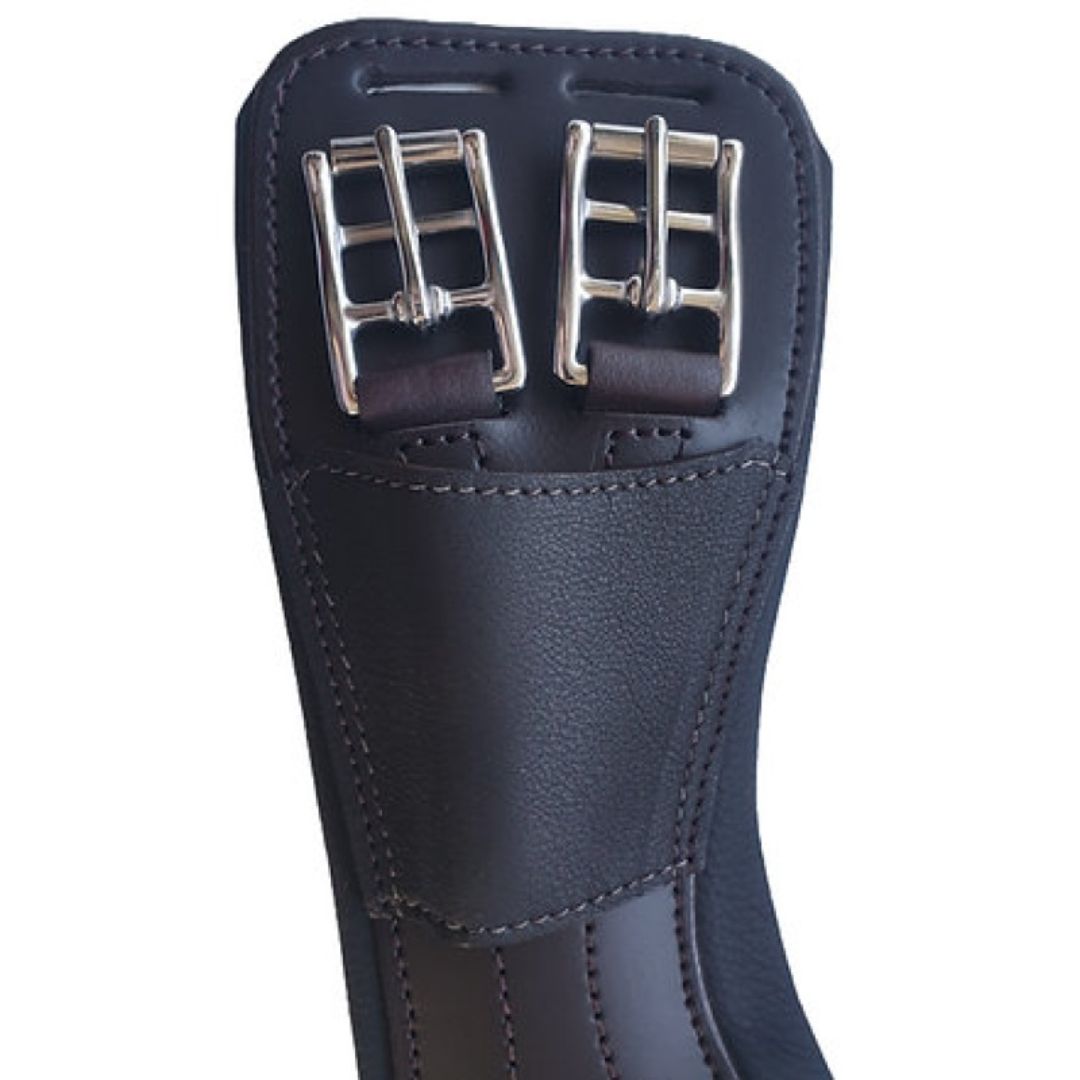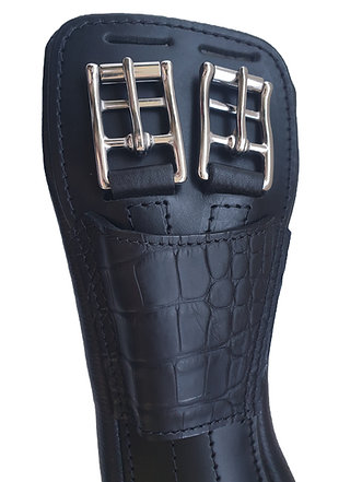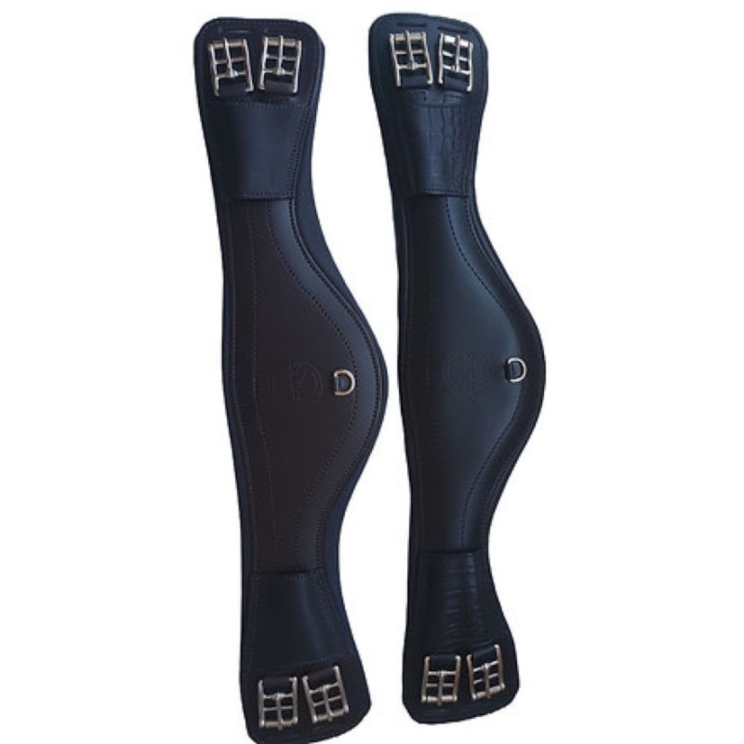 Suits standard to rear line grith groove horses. Made from the finest of UK leathers with cut away shaping around the elbow & super soft leather for comfort. Stainless steel roller buckles curved for the roll of the horse, D ring attachment.