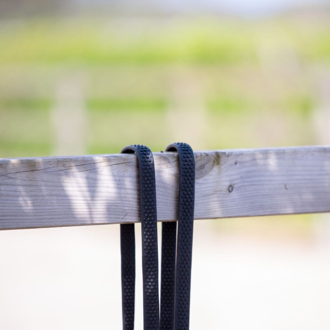 Rubber reins combined with top quality leather for a secure and comfortable grip. The reins have blind closures with a unique nylon core to prevent stretching and breaking. The stable closure ensures a softer contact between the horse’s mouth and the rider’s hand.